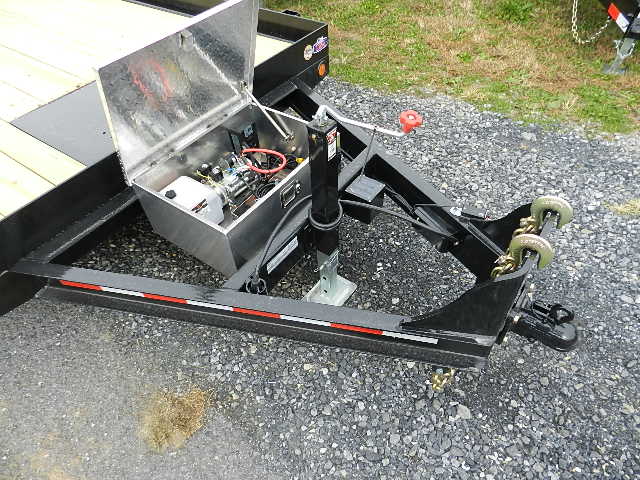 CAM Superline 7 x 20 Equipment Trailer Powered Tilt Deck Tilt Deck Electric Brakes all 4 Deck 80″W x 20’L (2) 7000lb Dexter Leaf Spring Axles Tires 235/80/R16 Adjustable 2-5/16″ Ball Coupler 7K Drop Leg Jack Stake Pockets D-Rings Tool Tray Approach Plate Two Year Warranty Powered Tilt Deck D-Rings Battery & Battery Charger Included Winch Plate