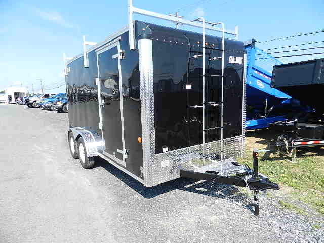 Deck 80″W x 14′L Rear Door 77″W x 69″H Side Door 36″ x 70″ Interior Height 76″T (3) Aluminum Ladder Racks Reinforced Walk On Roof (3) 7′ Steel Shelves 110V Inlet 3/4″ Plywood Flooring Electric Brakes all 4 Breakaway Switch with Kit and Battery Tires 205/75/R15 White Spoke Domes with Wall Switch Aluminum Fenders Aluminum Diamond Plate Stone Guard Safety Chains Front Jack Car Mate 7 x 14 Enclosed Contractor Trailer – Ramp Door